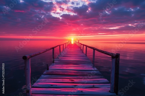 © Murda, Fototapeta premium Pier extending over the tranquil lake.