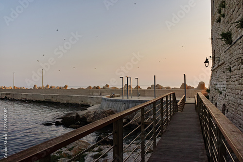 © barmalini, Obraz premium Pier in old small city Giovinazzo near Bari, Apulia, Italy in early morning