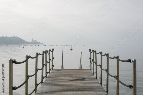 © Igor, Naklejka premium Pier in the sea with a grey sky