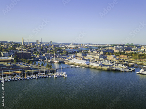 Fototapeta premium Pier of Boston Massachusetts USA, Wharf with sailboat and yachts in Charles...