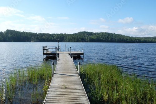 © Vladislav, Naklejka premium Pier on the shore of the lake near the village Antolla