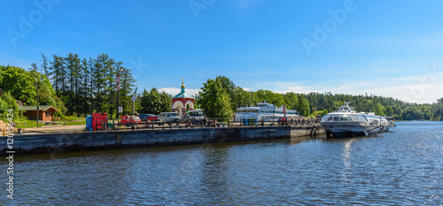 © a_mikhail, Obraz premium Pier Valaam Transfiguration Monastery.
