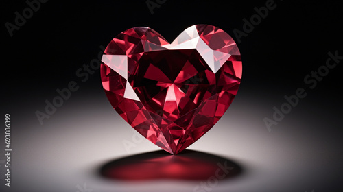 Naklejka premium Pierre précieuse en forme de coeur, rubis rouge, diamant. Sur fond,...
