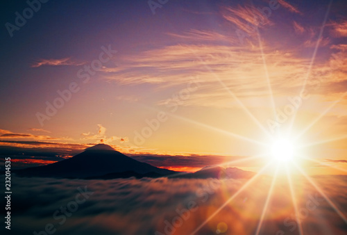 © k_yu, Fototapeta premium Pierwszy wschód słońca nad górą Fuji