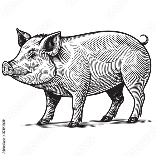 © tarakacraft, Obraz premium pig engraving vector illustration