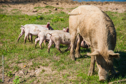 © SGr, Fototapeta premium Pig farm. Pigs in field