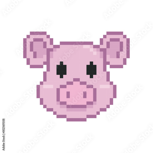 © JunasickArt, Obraz premium PIG HEAD ICON PIXEL ART