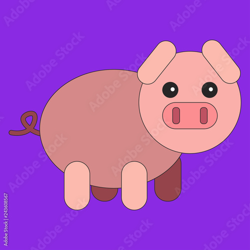 © Fotostock32, Naklejka premium Pig in cartoon flat style