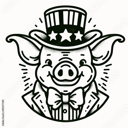 Fototapeta premium Pig 4th July Line Art Animal Patriotic with American Flag Memorial Day Clip...