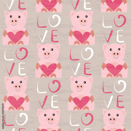 © lidiebug, Obraz premium Pig with heart seamless pattern