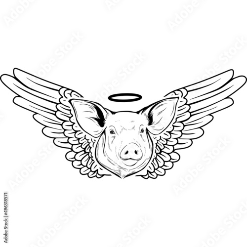© Loveleen, Fototapeta premium Pig with Wings and Halo Vector