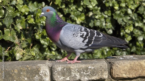 © Lalə, Naklejka premium Pigeon closeup, wall, daylight.