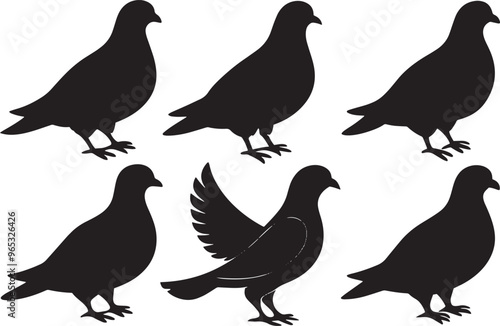 © Parvin, Obraz premium Pigeon Elegant Silhouette Vector Illustrations