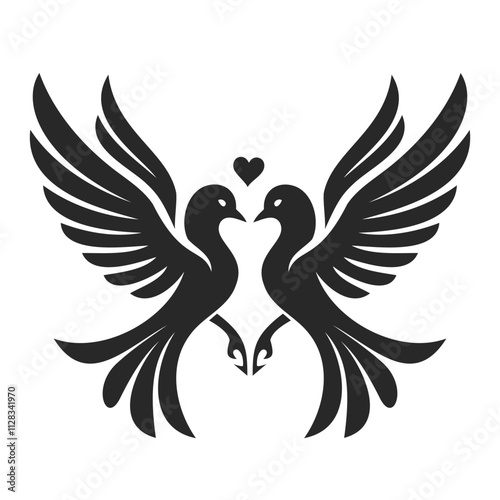 Fototapeta premium Pigeon facing each other, forming a heart shape vector clip art