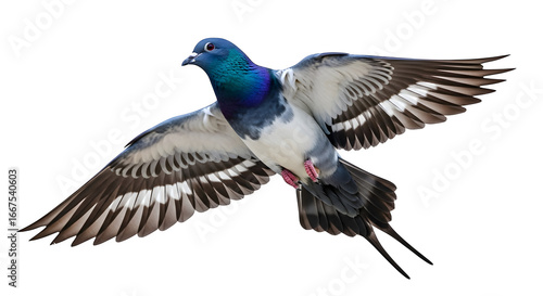 © Farhat, Obraz premium Pigeon in flight with wings spread against a
