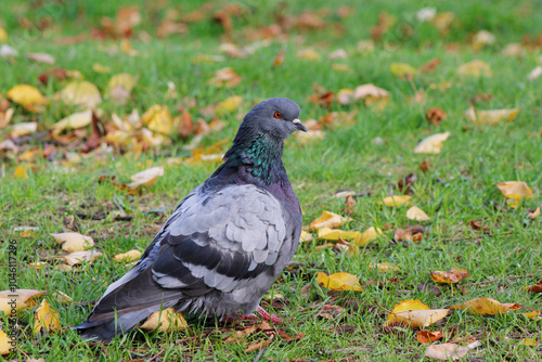 © laykamars, Obraz premium pigeon on grass