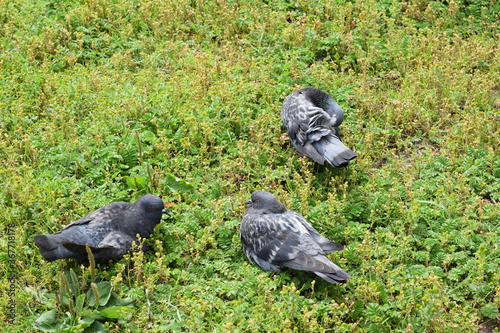 © tanzelya888, Obraz premium pigeon on the grass