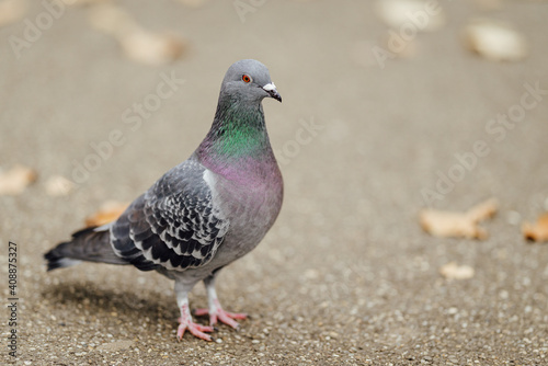 © BogdanMicu, Obraz premium Pigeon on the streets of a town