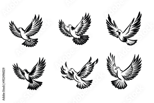 © Saim Art, Fototapeta premium Pigeon or dove set logo icon vector illustration design isolated