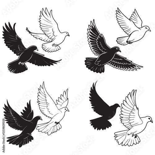 Fototapeta premium Pigeon silhouette, flying dove silhouette vector on white background