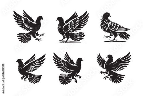 © Tuhin's Collection, Fototapeta premium Pigeon silhouette vector illustration with white background