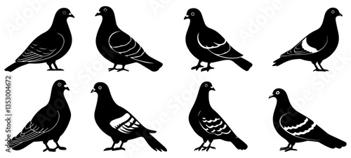 Fototapeta premium Pigeon Silhouette Vector Set, Collection of Decorative Flying Bird Icons