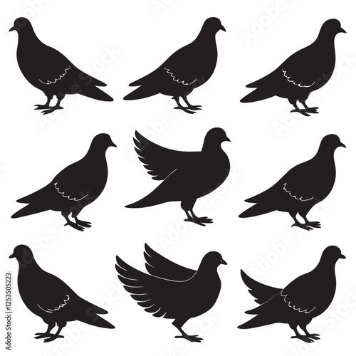 Obraz premium Pigeon silhouettes set, pigeon pack of vector silhouette design