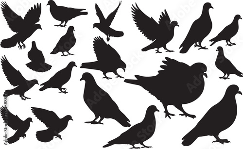Obraz premium Pigeon Silhouettes Vector Pack