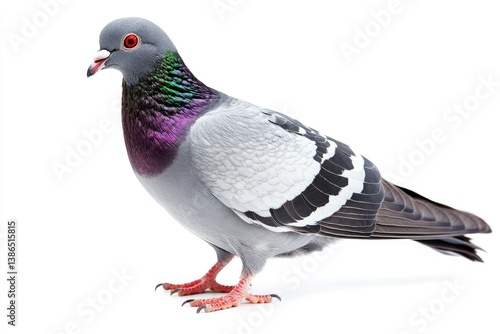 Naklejka premium Pigeon Standing on White Background with Gray and Purple Plumage