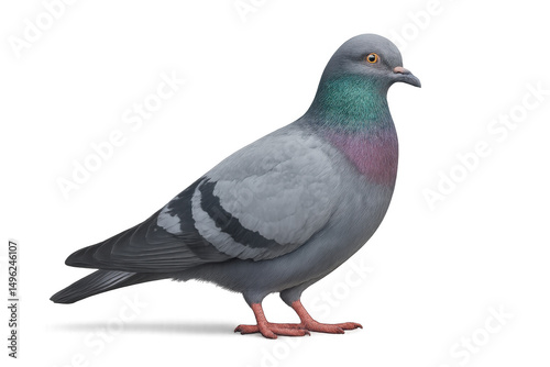 © Sandra, Fototapeta premium Pigeon standing with vibrant feathers, head turned, casting alert gaze against clean transparent backdrop