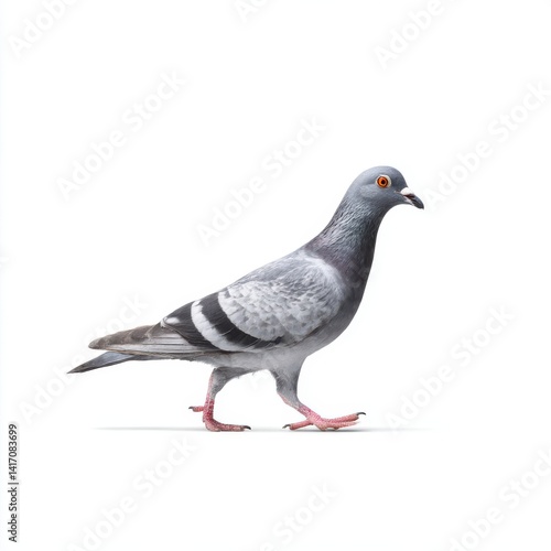 © MdJakir, Naklejka premium Pigeon walking gracefully isolated on white background