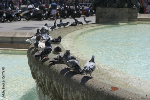 Fototapeta premium Pigeons at a Fountain
