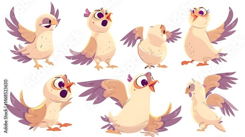 © Geetha, Fototapeta premium Pigeons bird isolated on white background. Vector cartoon