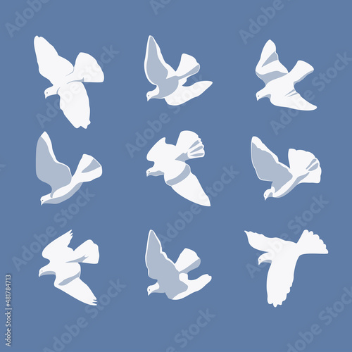 Fototapeta premium Pigeons, doves. Sign, symbol, drawing, vector illustration. Vector image of a flying bird, isolated design element.
