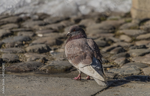 Obraz premium Pigeons on pavement in center square in Ceske Budejovice