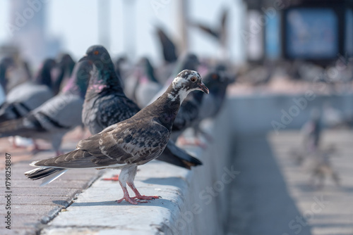 © ElMehdi, Obraz premium Pigeons on the street, brown and white