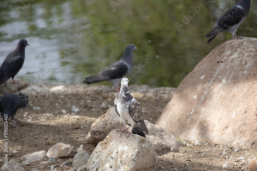 Obraz premium Pigeons resting on a rock