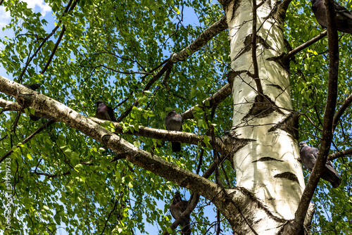 © миша, Fototapeta premium Pigeons walk during the day in the park in the city.