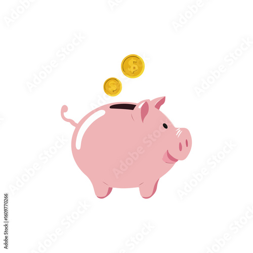 © chysakibahmed, Obraz premium Piggy bank flat vector illustration