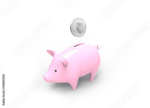 Obraz premium Piggy bank savings with Indian rupee silver coin