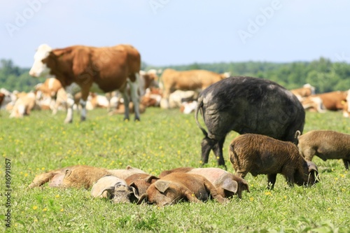 Fototapeta premium Pigs and cows on the farm