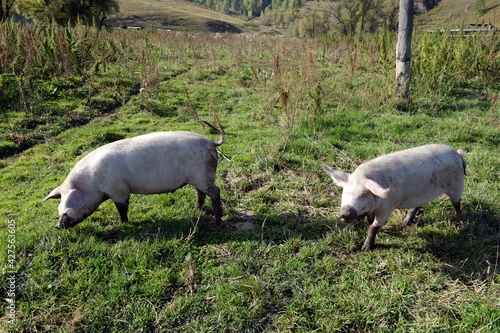 © b201735, Fototapeta premium Pigs in the vicinity of the taiga village of Generalka of the Altai Territory