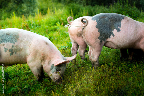 © KariDesign, Fototapeta premium pigs outside in the grass