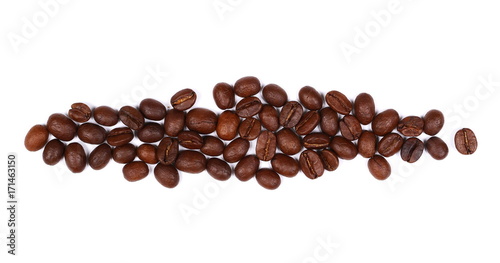 © dule964, Naklejka premium pile coffee beans isolated on white background and texture, top view