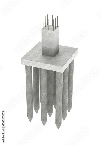 Fototapeta premium Pile foundation with pile cap and reinforced concrete column, 3D render isolate