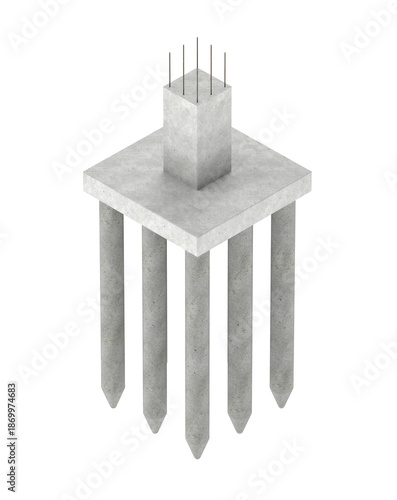 Fototapeta premium Pile foundation with pile cap and reinforced concrete column, 3D render isolate