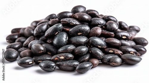 © Isolated studio, Obraz premium Pile of Black Beans on White Background for Culinary Uses and More