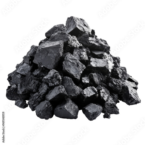 © Maestro, Fototapeta premium Pile of black coal rocks in natural setting isolated transparent background