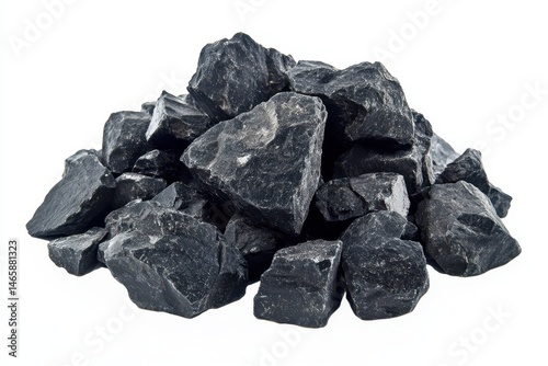 © Pure Pro Stock, Obraz premium Pile of black obsidian rocks on a white background in studio shot