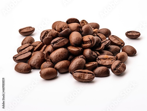 Naklejka premium Pile of brown coffee beans isolated on white background.